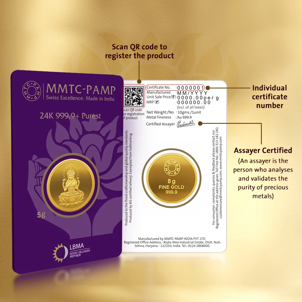• Brand Specifics: MMTC-PAMP gold bars and coins are known for their precise craftsmanship and higher liquidity, making them a preferred choice for investors.